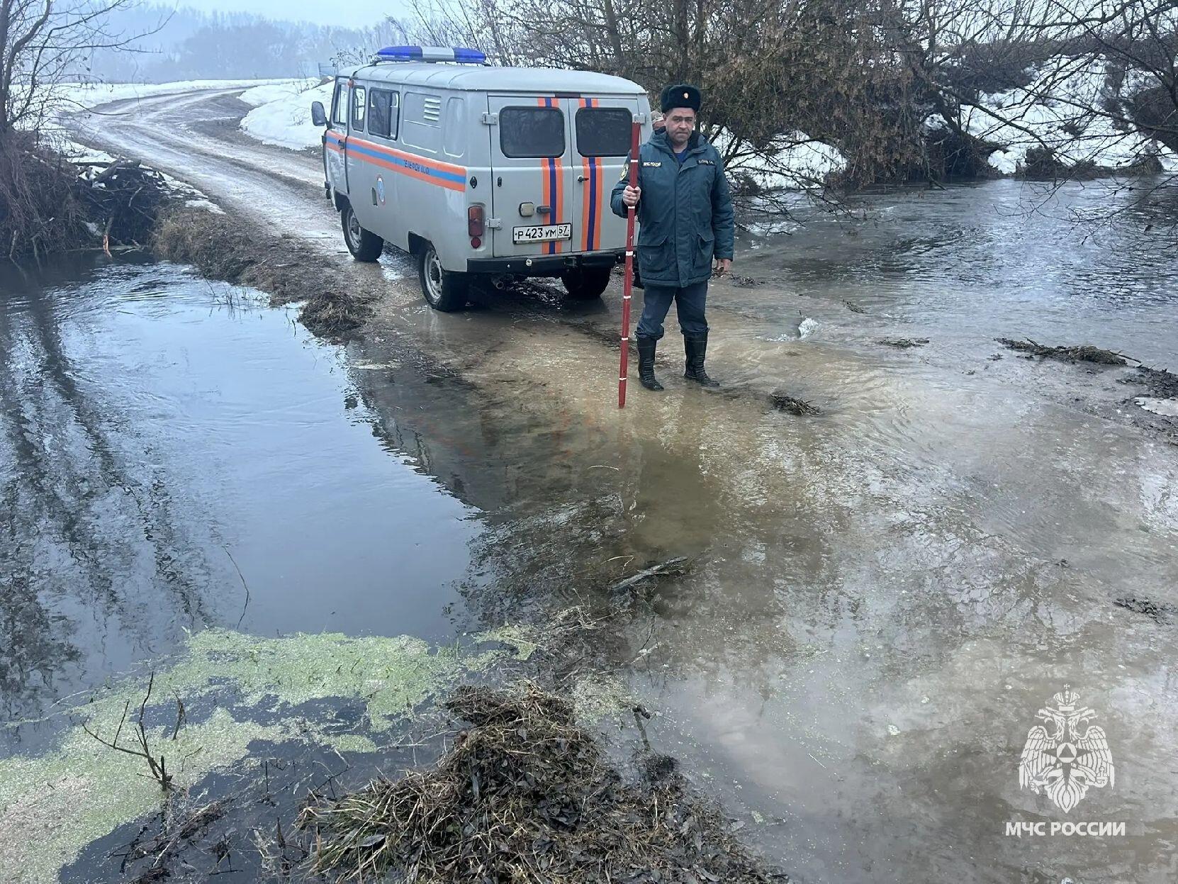 На фоне снеготаяния и осадков в Орловской области поднялся уровень воды в реках, что привело к подтоплению низководного моста в Залегощенском районе.